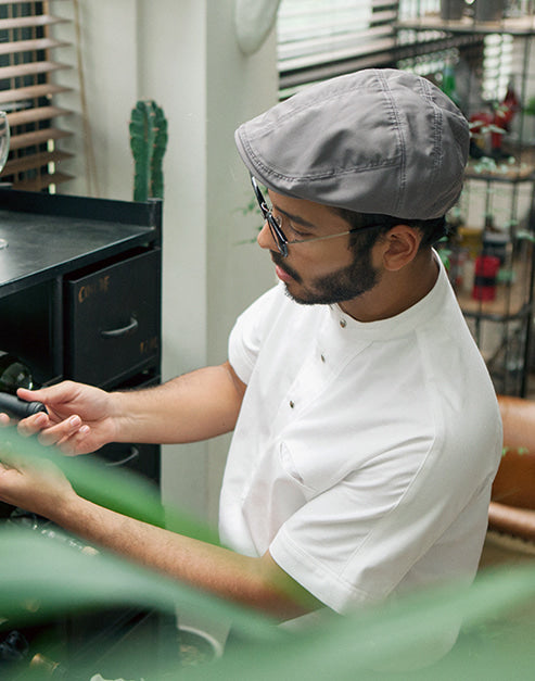 a beret exclusively designed by our designer.