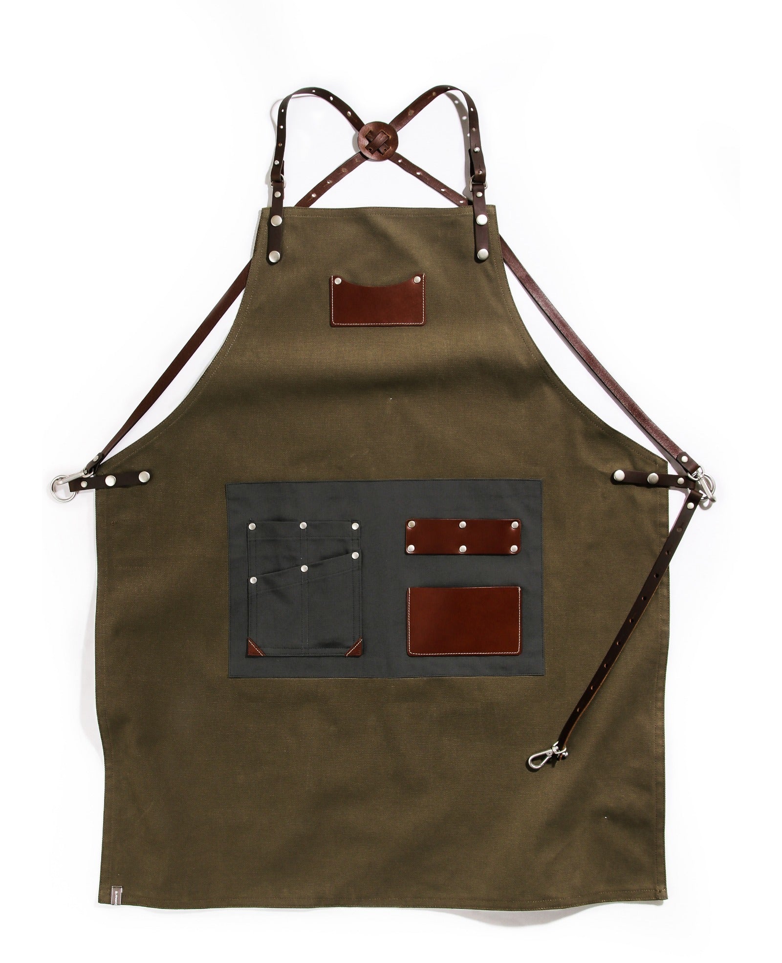 customizing canvas leather apron khaki #AA1807