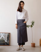 Natural linen half moon waist apron #AA2009 Charcoal