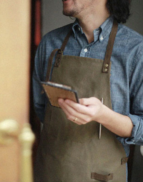 Canvas Suede Leather Apron Khaki #AA1415