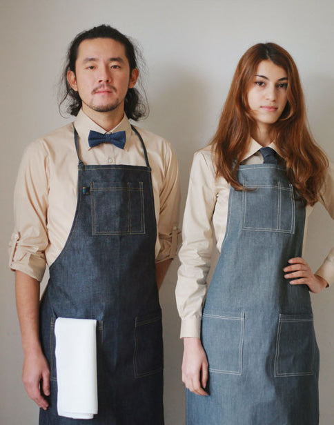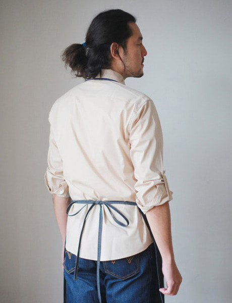 A coated denim apron from the basic line,