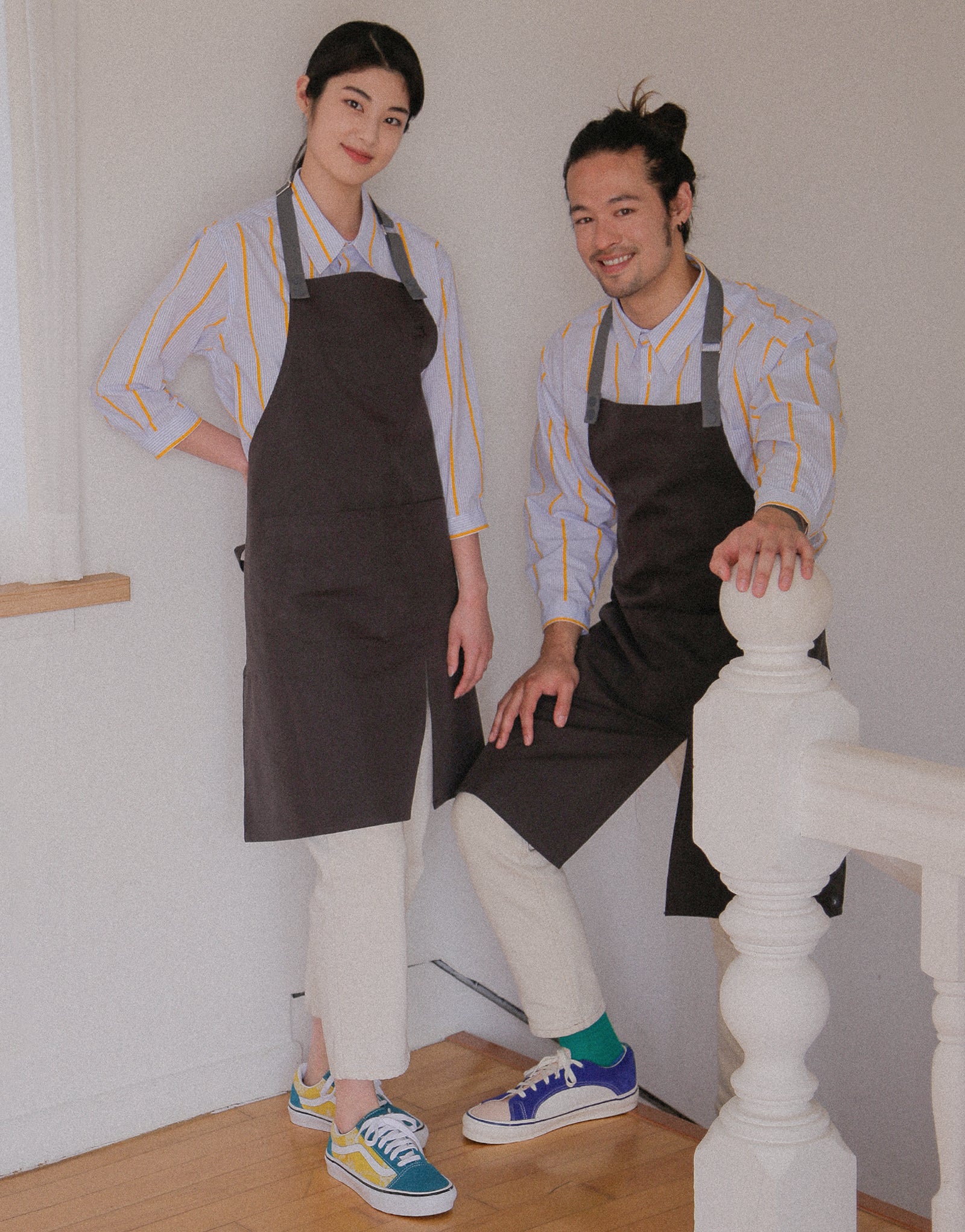Loose fit cotton capri sleeves shirt #AS1993 Yellow stripe