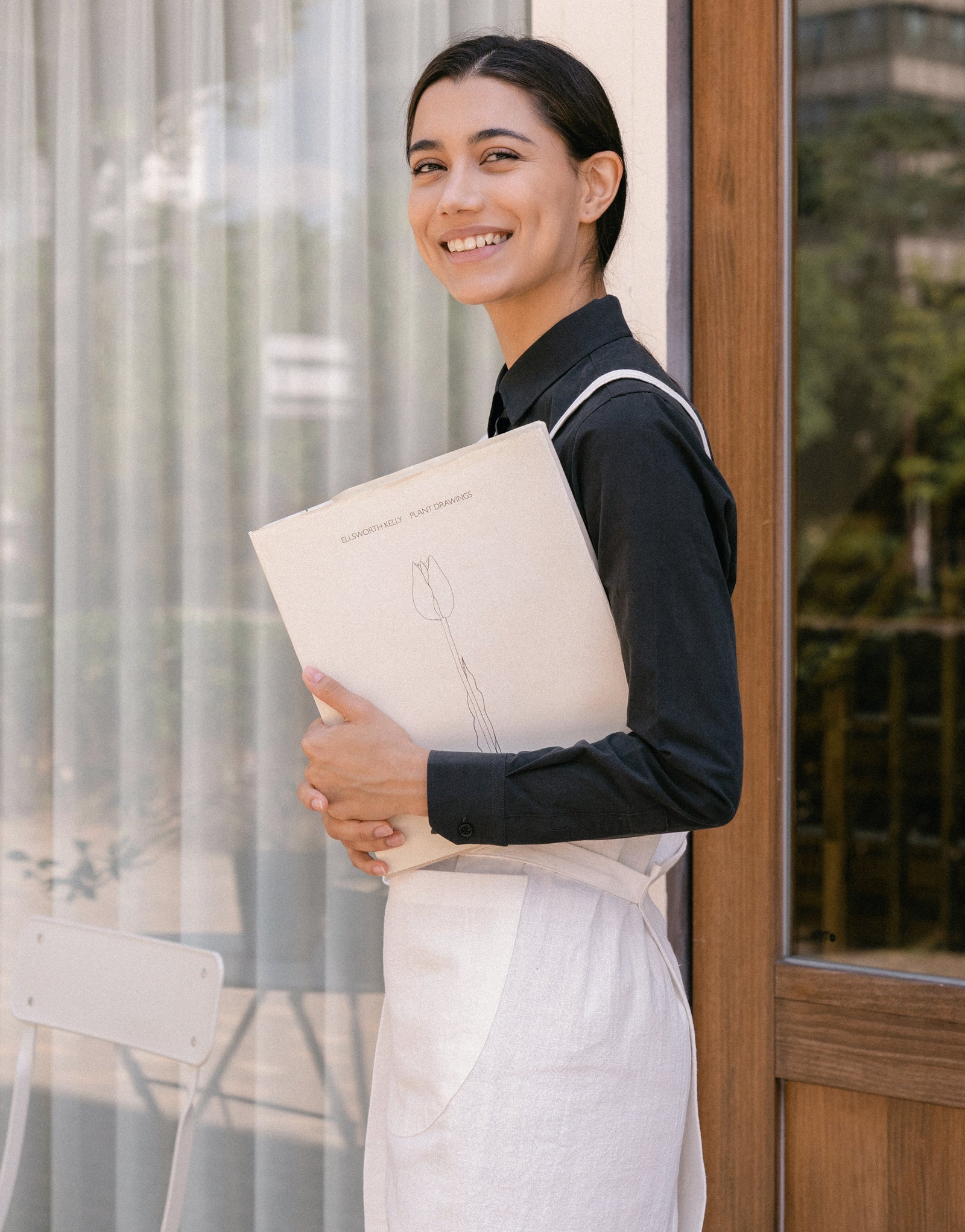 Natural linen half moon chest apron #AA2008 Ivory