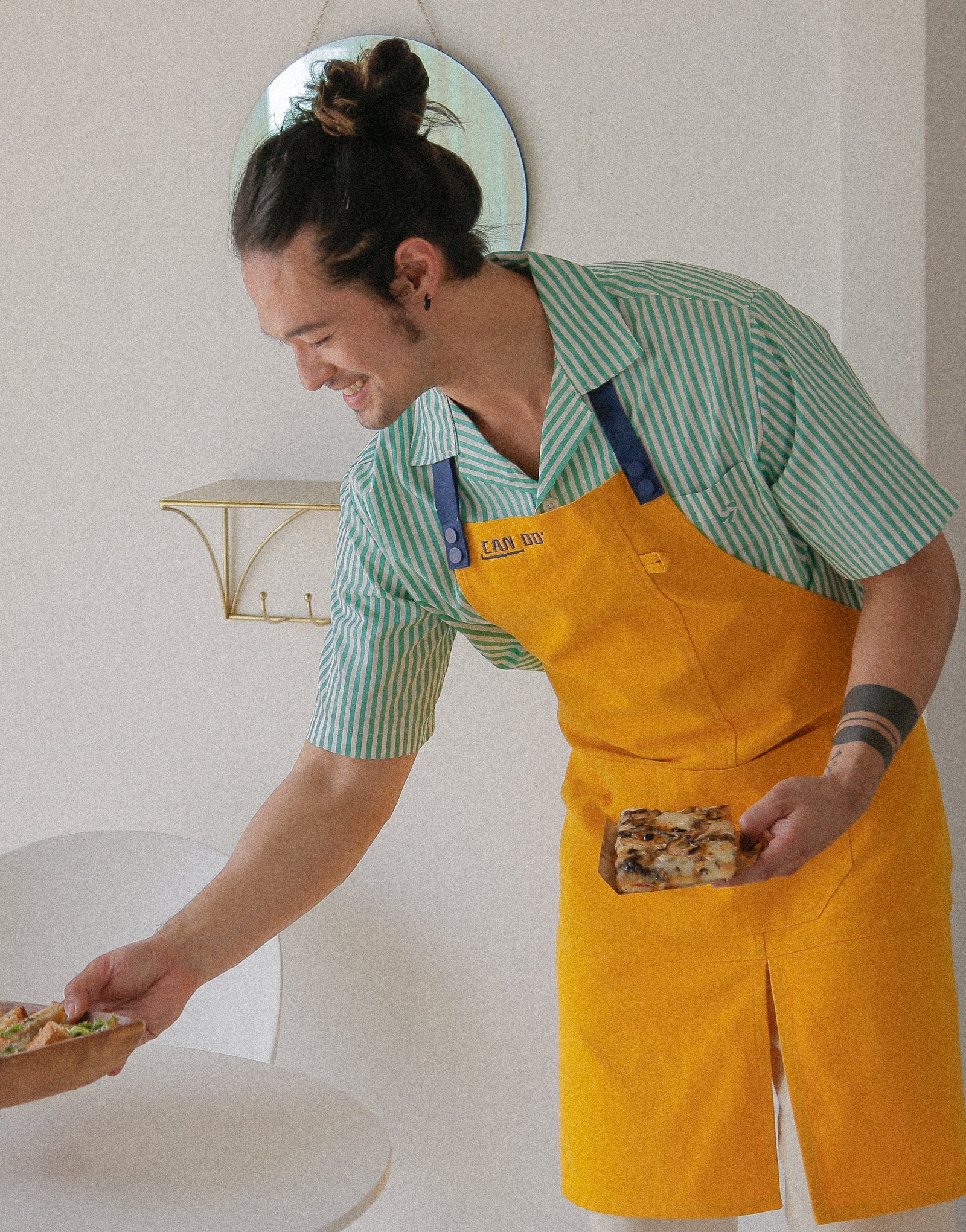 Open collar green striped short-sleeved shirt #AS1990